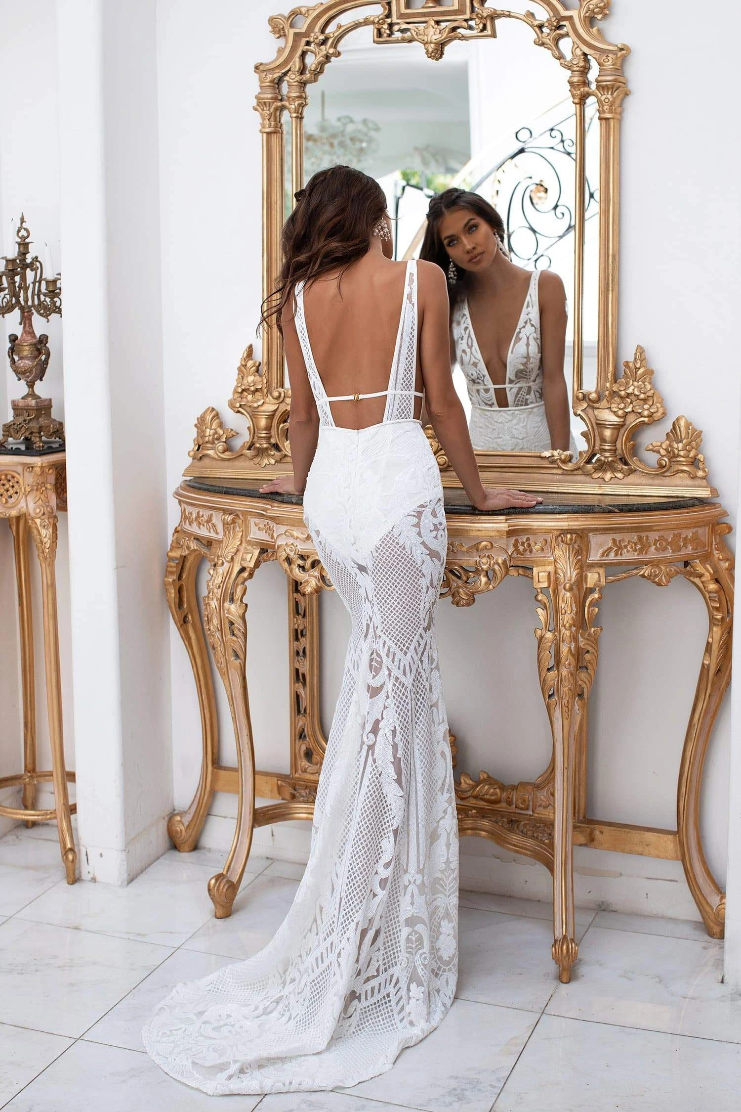 *Note: this gown has minimal stretch as such our model has gone up a size from her standard size, we suggest ordering the next size up.