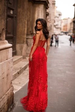 Glitter lurex fabric, iridescent lilac tone, adjustable right leg side slit, nude mesh lining, minimal stretch, cups (not push-up), bust wire, zip, adjustable straps.