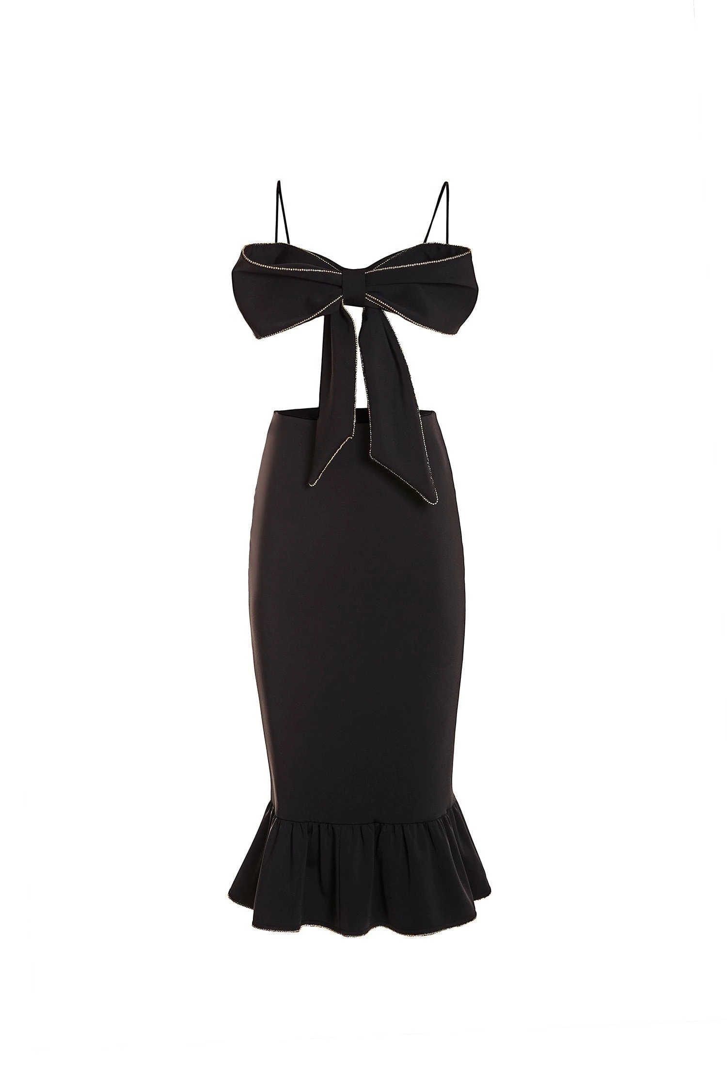 Embracing femininity, the Lucille Set embodies class and grace with its accented bow crop, diamante trim hem, and dainty sleeves. With a form-fitting skirt and flared bottom accent, the Lucille Set is a glamourous look for your luxury events.